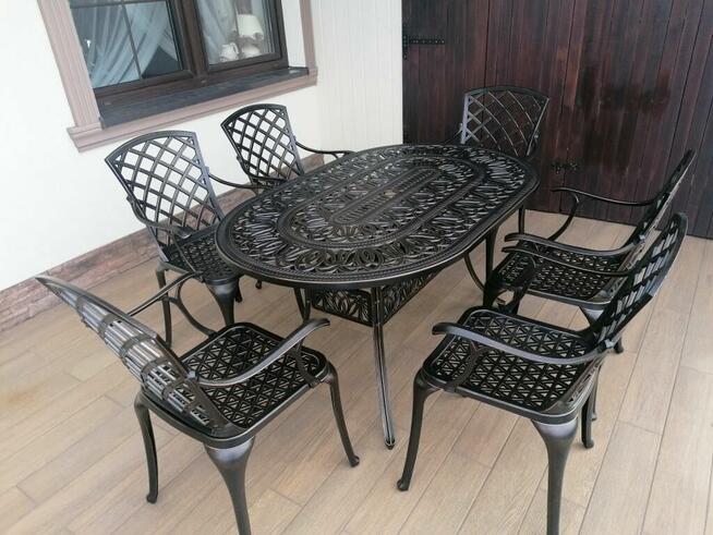 Sprzedam nowy komplet mebli ogrodowych aluminiowych styl rustykalny kolor czarny patynowany zlotem. Produkt bardzo wysokiej ...
